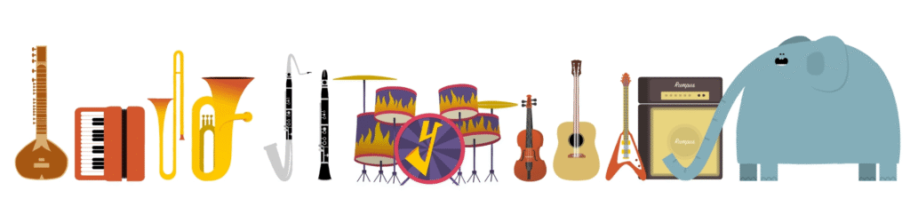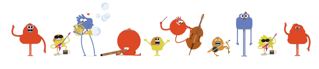 The Fact Jams feature Bing, Bang and Boo – playful characters devised and designed by Rumpus. We see them get into all kinds of musical scrapes with giant instruments, tiny instruments, medium sized instruments and the occasional elephant.