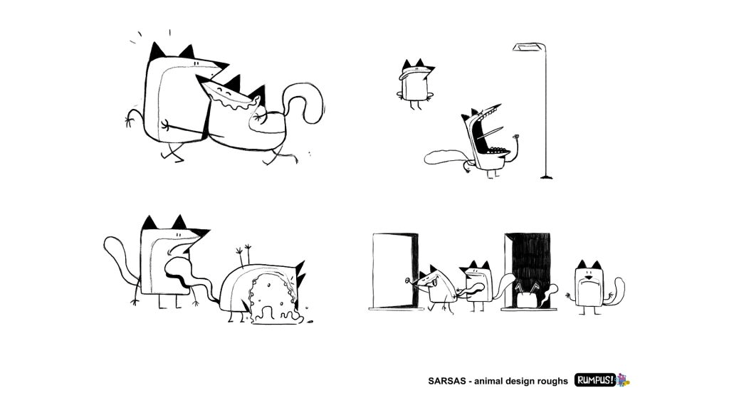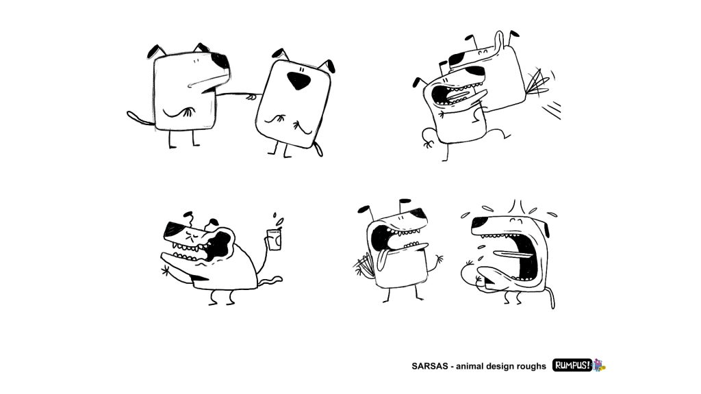 When the two leading character blobs were approved, we took them into the storyboard phase so the client could visualise the stories from start to finish.