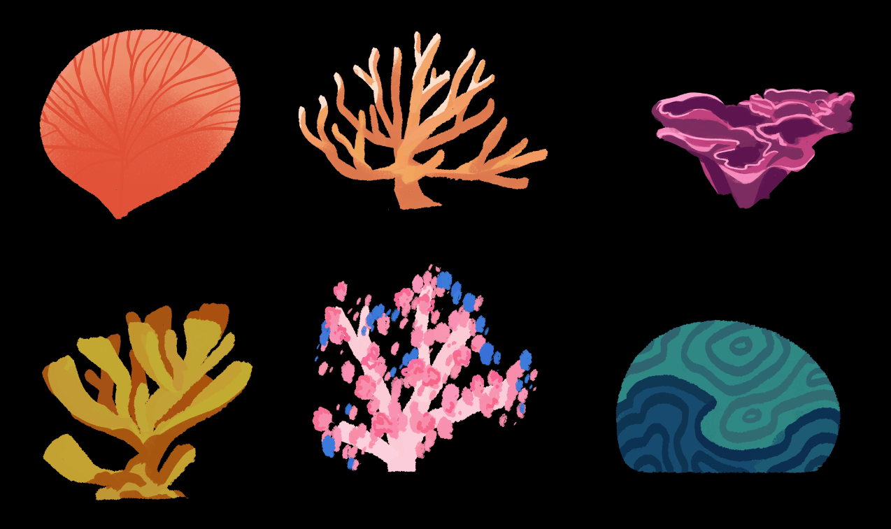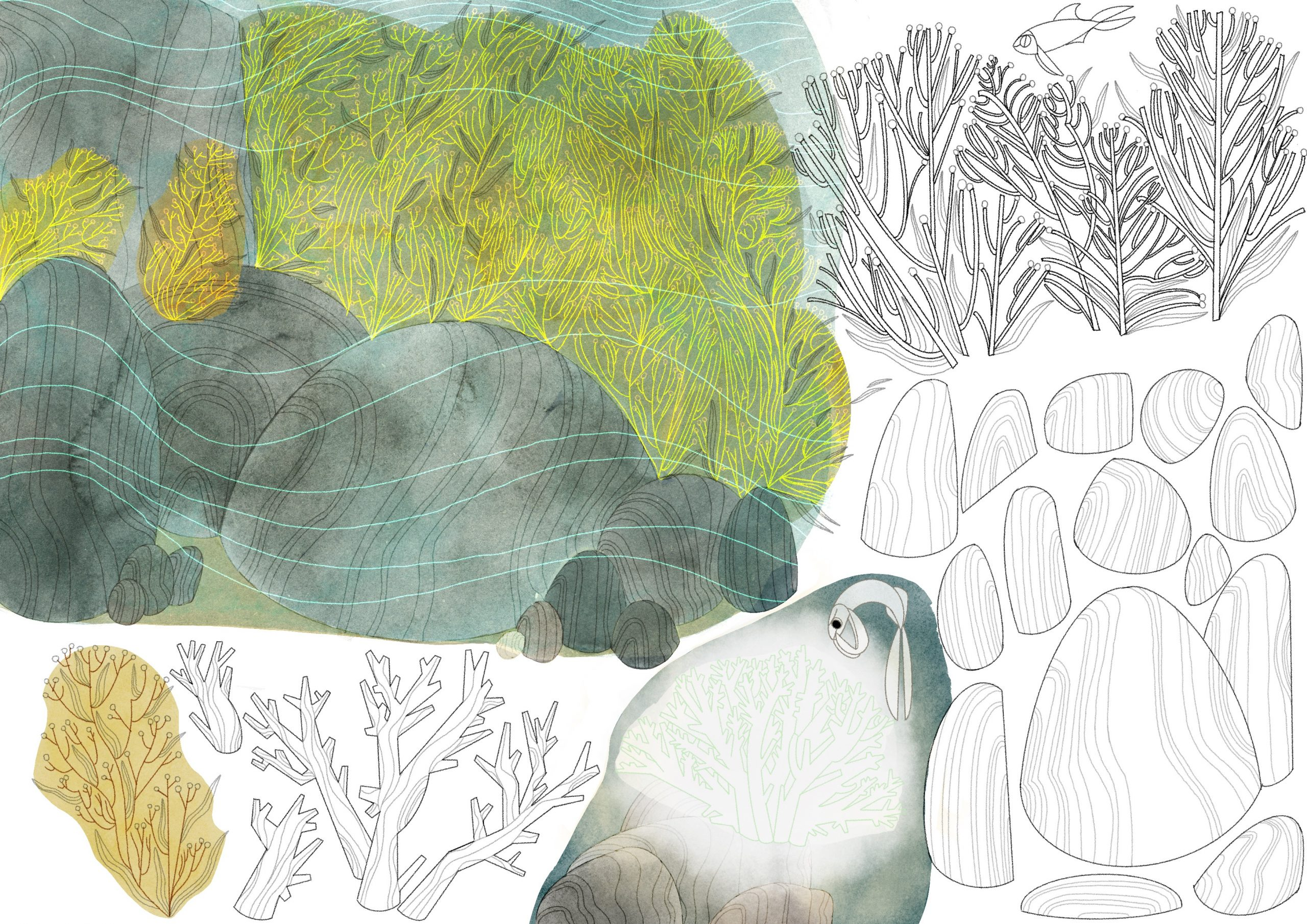 We worked up the ocean world with painted background designs full of depth. The atmosphere of the bleached coral ‘forest’ is a brilliant scene setter and the joyously colourful sanctuary is beautiful!