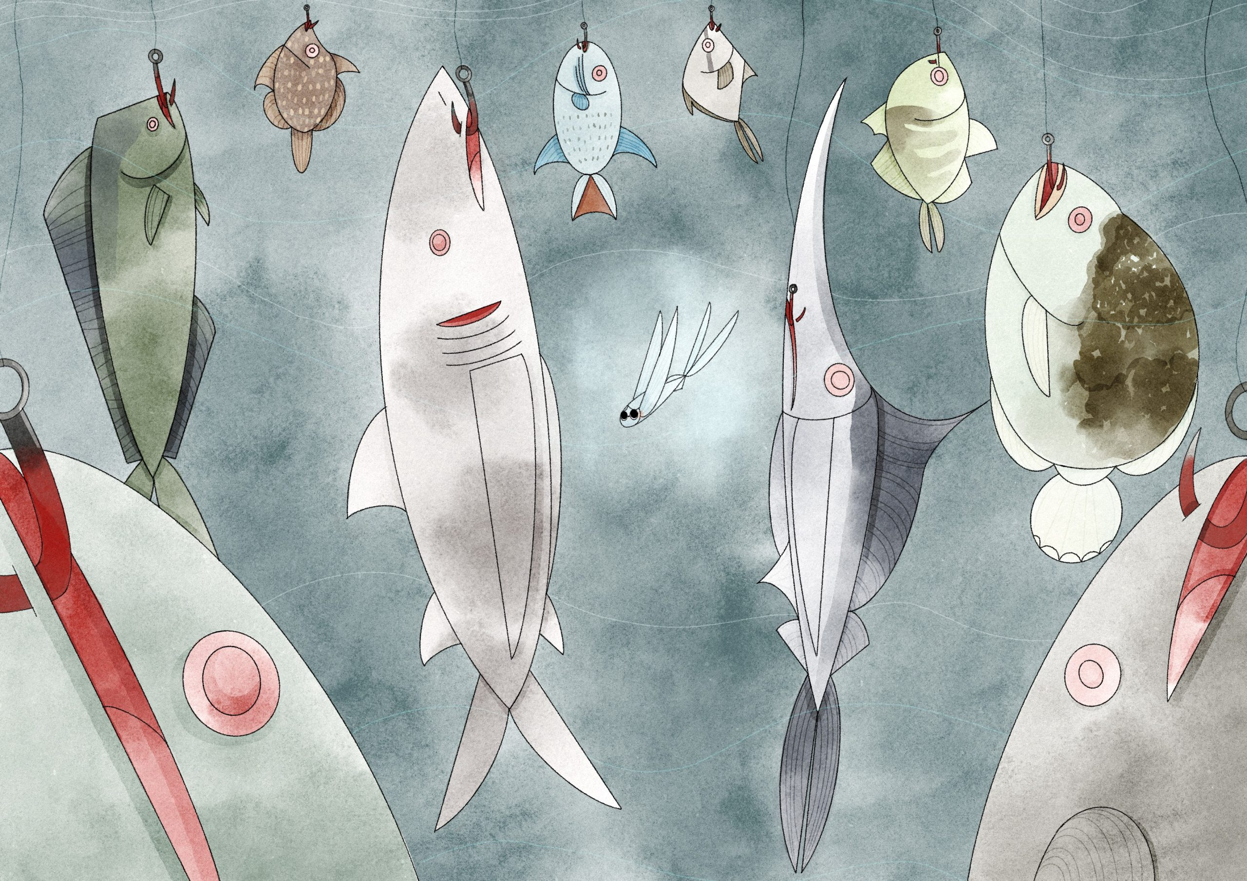 We were excited to work in hand drawn frame by frame animation for this project. This medium has allowed a natural flowiness to the fish’s bodies and fins, smog and ocean life. We had loads of fun animating many grumpy and cute fish.