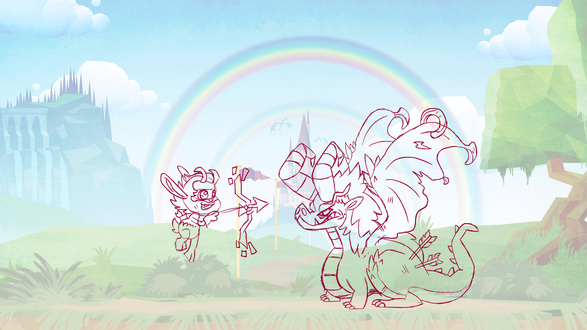 Untold asked us to produce five seconds of animation to be nestled amongst the loved-up live action stories. The animation was to show a multiplayer video game; a giant angry dragon and a cute tiny fawn battling it out (some might say flirting) in a fantasy-rainbow-castle world.